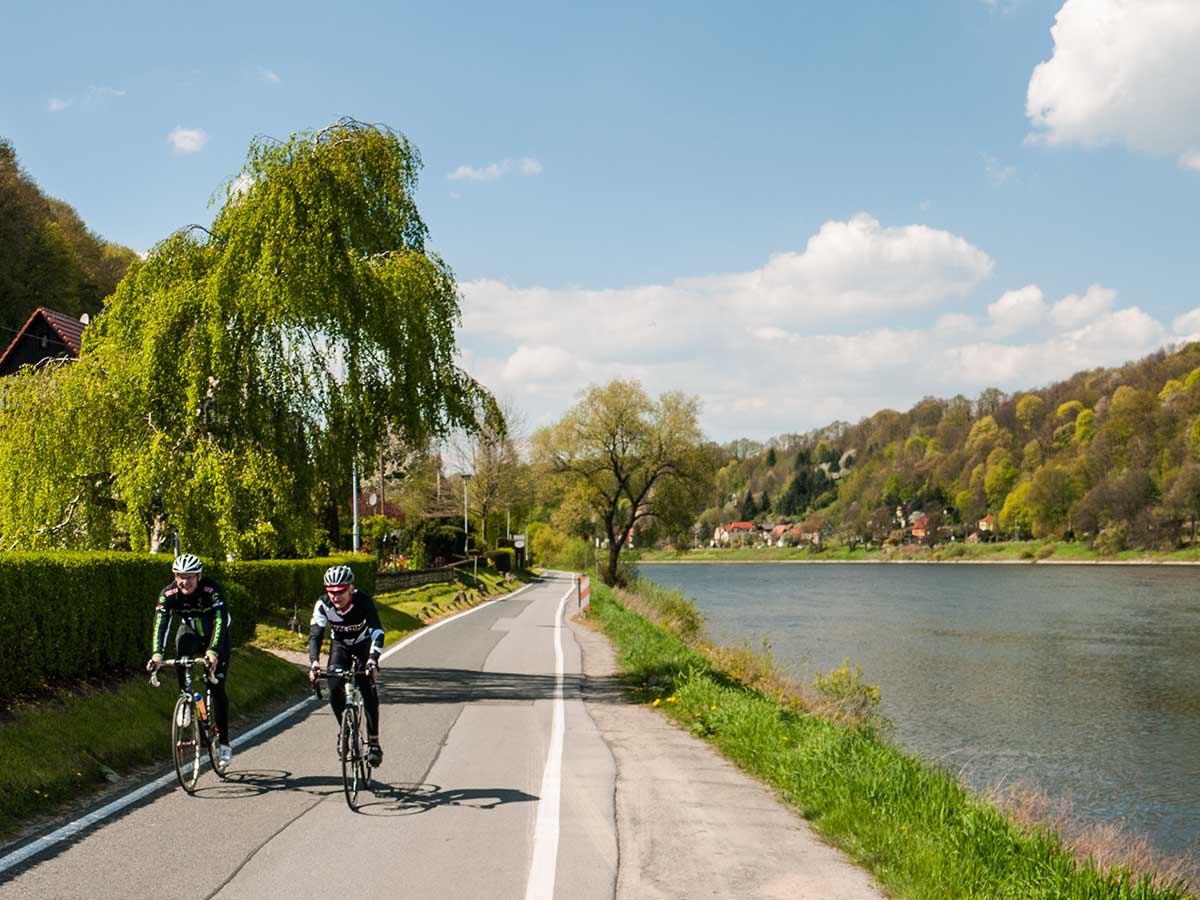 Man kann auf sehr sportliche Art in die Sächsisch-Böhmische Schweiz gelangen. Auf dem Elberadweg fährt man von Hamburg entlang der Elbe flussaufwärts oder vom Riesengebirge auf dem Moldauradweg flussabwärts in mehreren Etappen in die Region der Sächsisch-Böhmischen Schweiz. Wer Bus und Rad kombinieren möchte, kann mit Fahrradbussen an Wochenenden und Feiertagen – zwischen Ende März bis Anfang November - einen gemütlichen Fahrradausflug durchführen. Für Tagestouristen ist auch die Kombination mit der Bahn sehr reizvoll. Lassen Sie sich mit dem Zug ins Gebirge fahren und genießen sie bei der Rückfahrt flussabwärts die grandiose Szenerie der Sächsisch-Böhmischen Schweiz.
